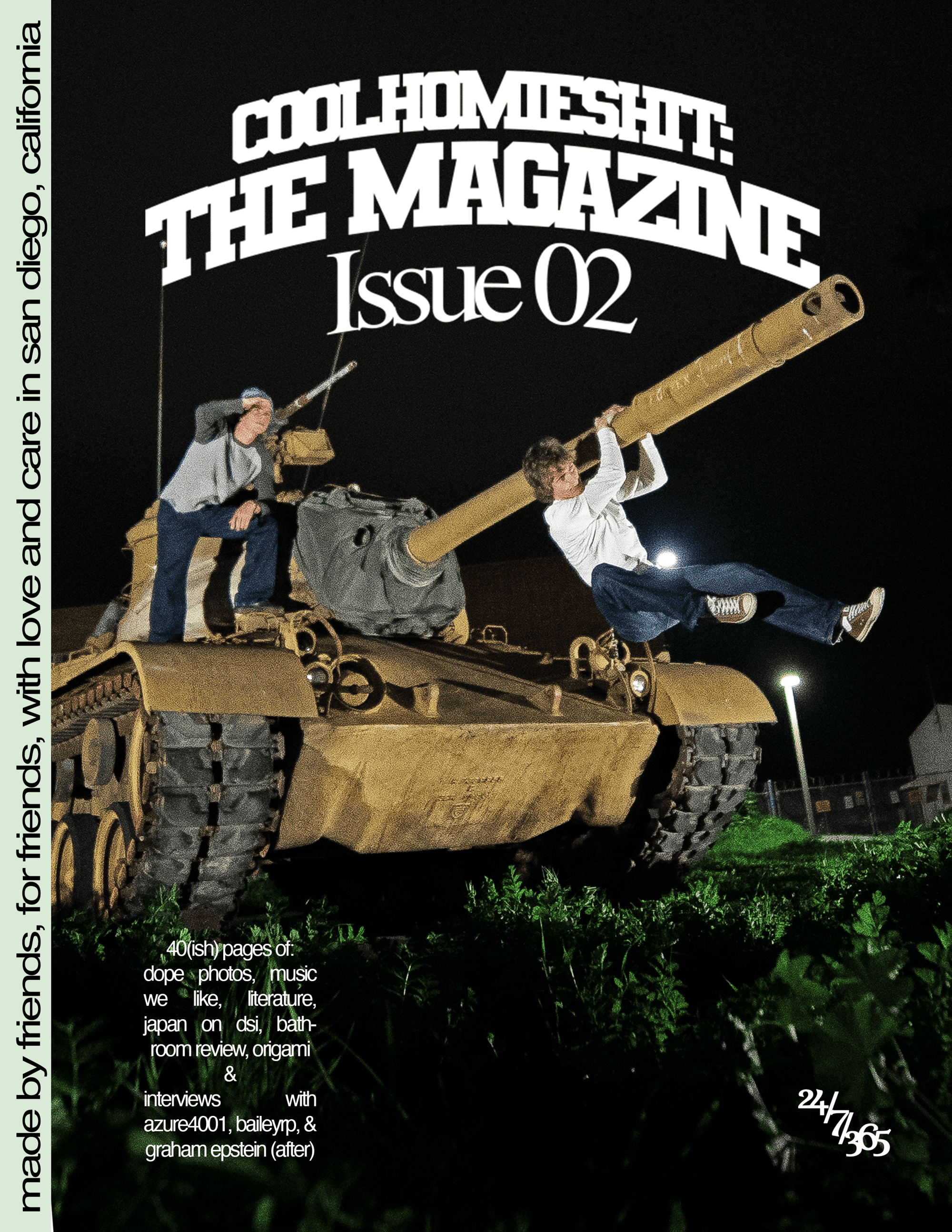 40(ish) pages of: dope photos, music we like, literature, japan on dsi, bathroom review, origami, & interviews with azure4001, baileyrp, and graham epstein (after)